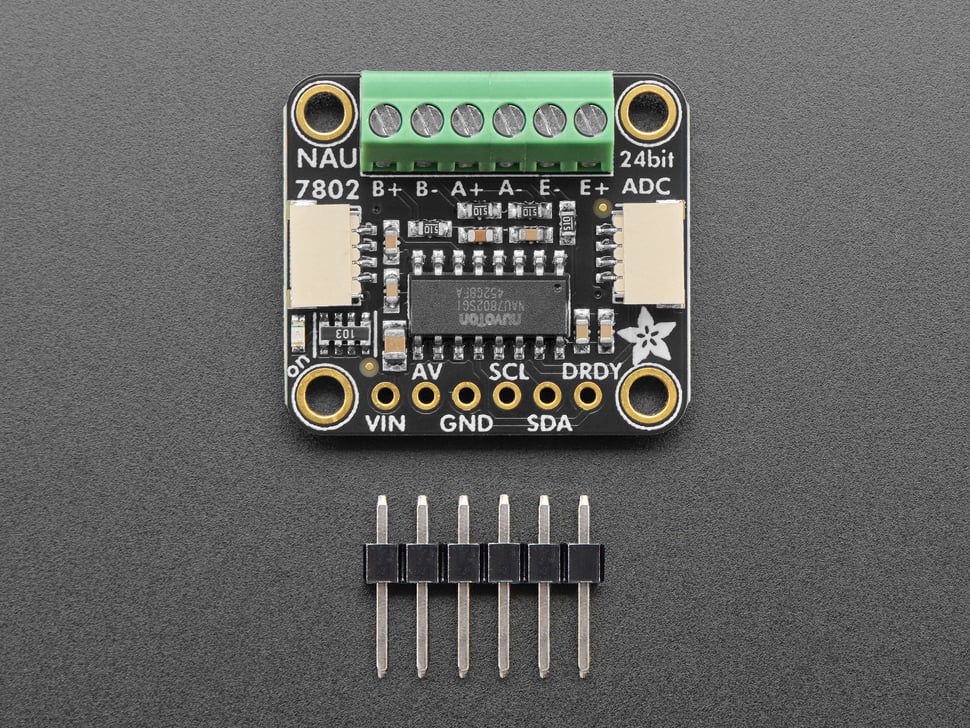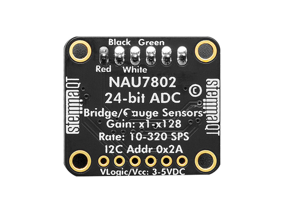 NAU7802 är en 24-bitars ADC för lastceller. Läser av signaler från lastceller eller andra sensorer i en Wheatstone-bryggkonfiguration. Med inbyggd förstärkning och kalibreringskretsar möjliggörs noggranna mätningar av små resistansförändringar som uppstår vid mekanisk belastning av lastcell.