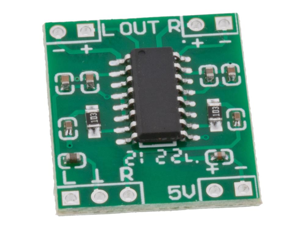 - Uteffekt: 2x3 W (5 V / 4 ohm) eller 2x1.5 W (5V / 8 ohm)