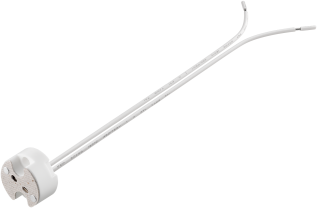 Lamphållare / sockel för G9. Med förmonterade värmebeständiga kablar (0.15 m). Tillverkad av kermaik / porslin. Godkänd för temperaturer upp till 250 °C. Två hål för skruvinfästning i armatur.
