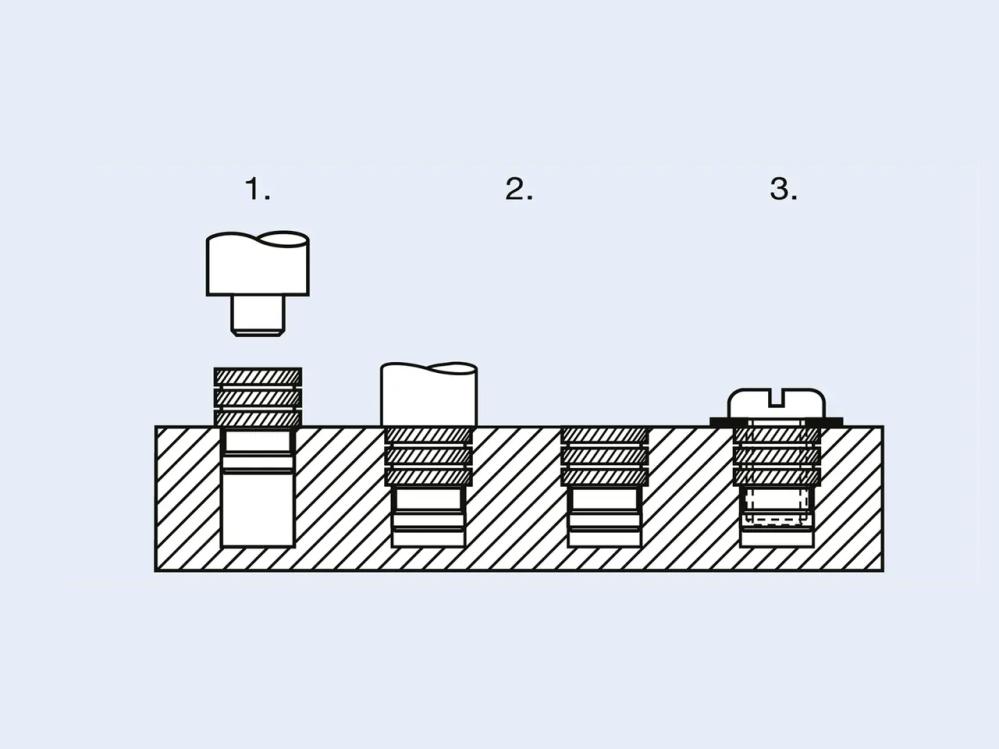 Gänginsats av mässing för infästning i termoplaster. Med fläns.