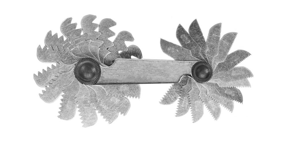 Gängtolk / gängmätare. Identifierar gängstigning hos metriska gängor (0.25–6.0 mm).