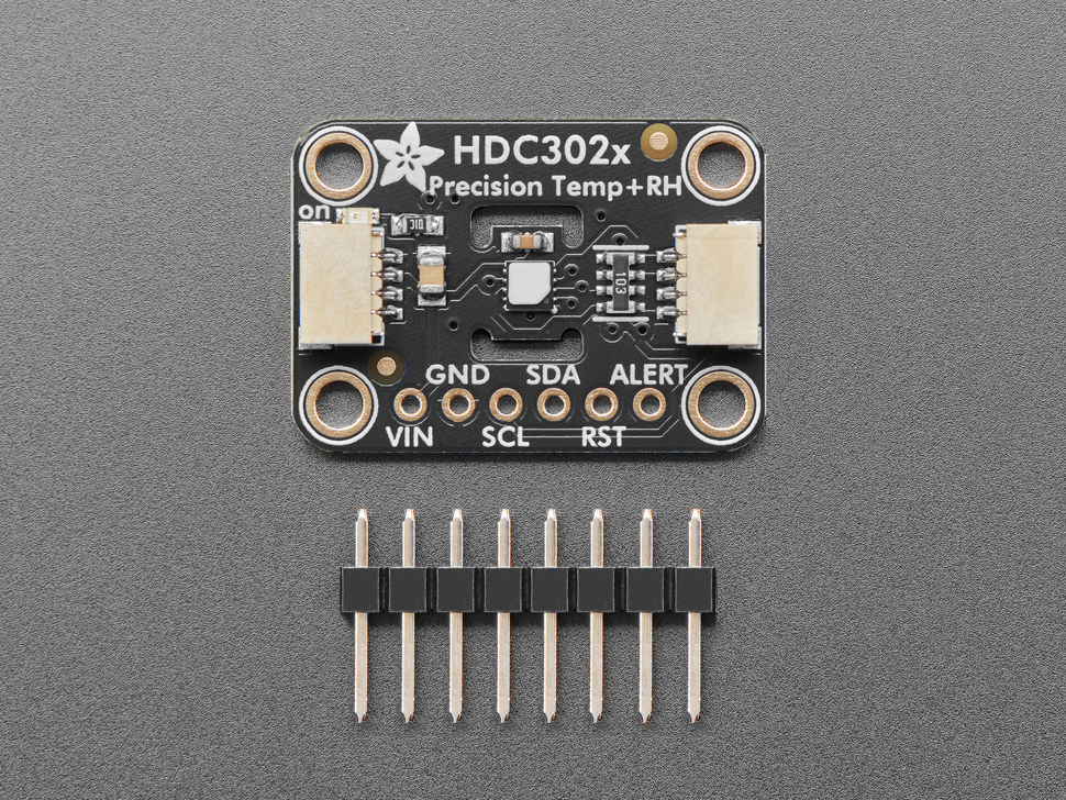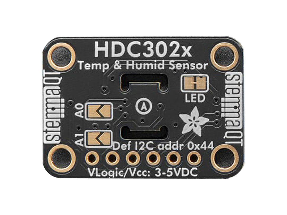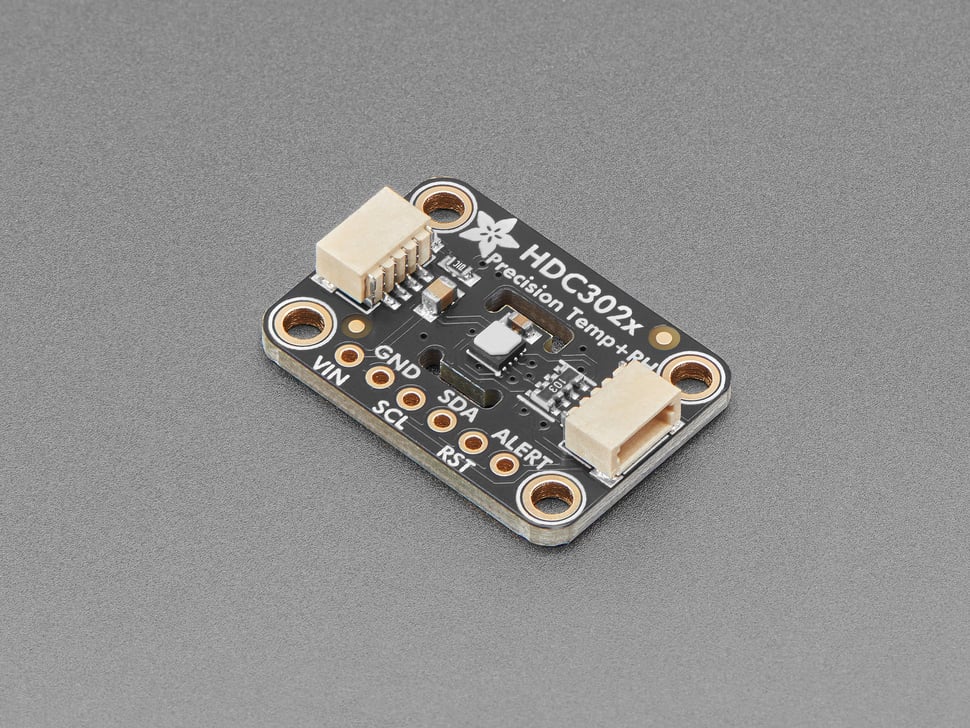 HDC3021 är en sensor för att mäta temperatur och luftfuktighet med extrem precision. Noggrannheten för temperatur är ±0.1°C och för luftfuktighet 0.5%, vilket är enastående bra. För att göra livet enklare är den lilla sensorn monterad på ett behändigt adapterkort tillsammans med de få kringkomponenter som krävs för att den ska fungera. Kommunikation mot mikrokontroller sker via I2C. Upp till 4 sensorer kan anslutas till samma buss genom att konfigurera varje sensor med en unik adress. Adressen ställs med lödbryggor på kortets baksida. Bibliotek och exempekod för Arduino och Python finns att tillgå så det går snabbt att komma igång.