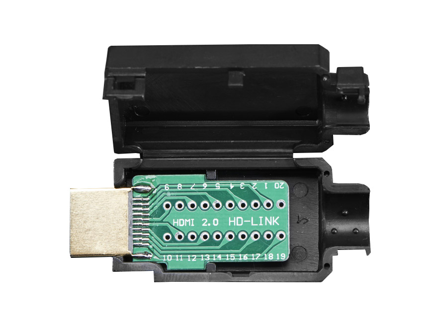 Breakout-kort med HDMI-hane. Gör det möjligt att ansluta eller bryta ut alla signaler från en HDMI-kontakt till lödpads på ett kretskort. Modulen gör det enkelt att skapa egna HDMI-kablar, adaptrar eller specialanpassade anslutningar i elektronikprojekt och prototyper. Kortet är utrustat med en HDMI-kontakt och genompläterade hål där varje signal från kontakten är tillgänglig för lödning. Levereras med ett robust clip-on-hölje som skyddar kontakten och gör installationen mer stabil i praktiska projekt.