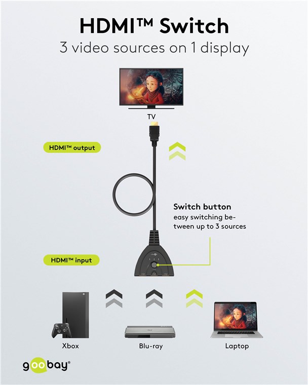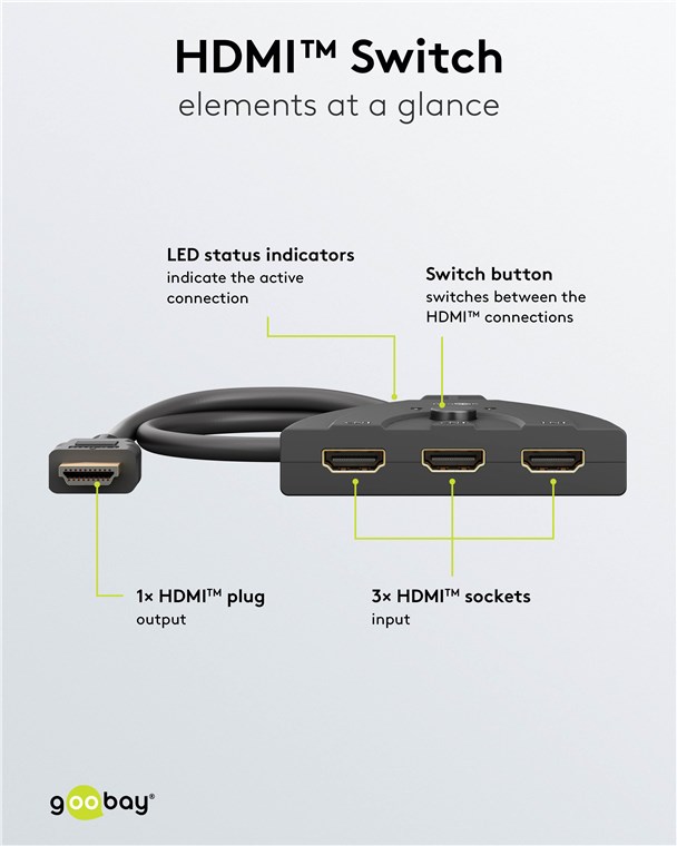 HDMI-Switch 3 till 1 är en omkopplare som gör det möjligt att växla mellan tre HDMI-källor till en display.