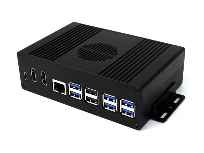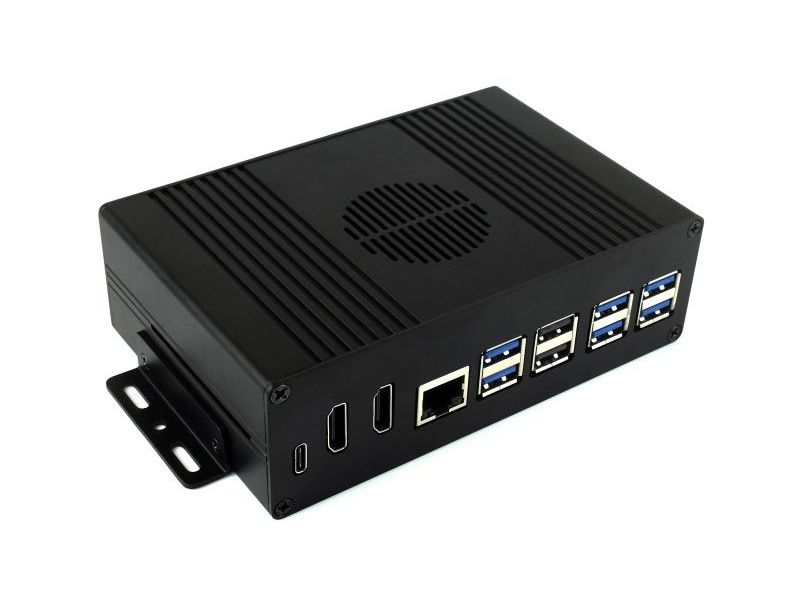Lådan har flera smarta funktioner, bland annat ventilationshål, plats för montering av fläkt (ingår ej), vinklar för fastskruvning i t.ex. vägg, skrivbord eller andra möbler, två fullstora HDMI-utgångar, en USB-C-kontakt, ingång för matningsspänning, och en UART debugg-port som är nåbar utifrån. En pluggbar skruvplint för spänningsmatning ingår.