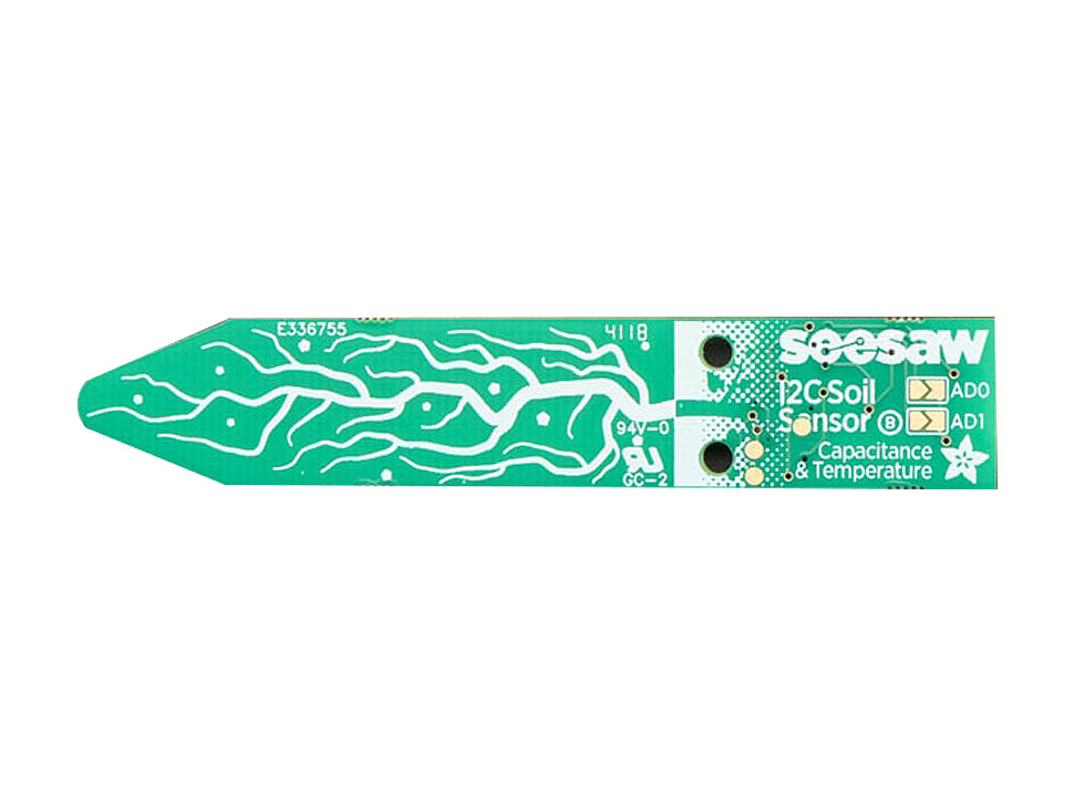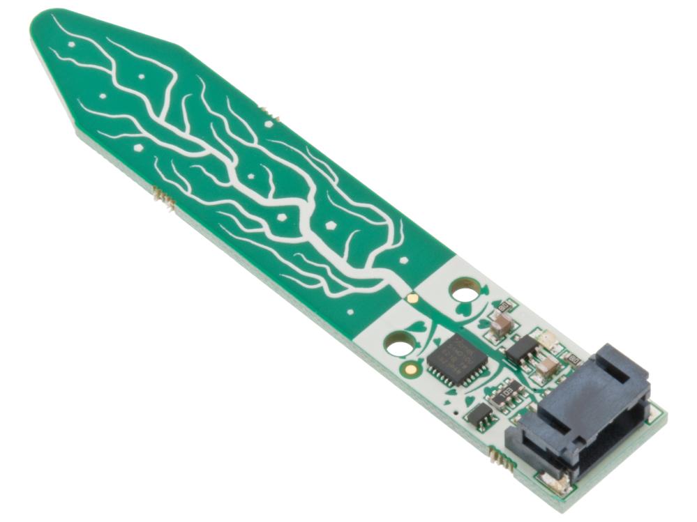 To make it so you can use the sensor with just about any microcontroller, we have an I2C interface. Connect a 4-pin JST-PH cable (we have a few stocked) to your microcontroller or single board computer to 3-5V power, Ground, I2C SDA and I2C SCL and then run our Arduino or CircuitPython code to read the temperature and capacitive measurement. No soldering required!