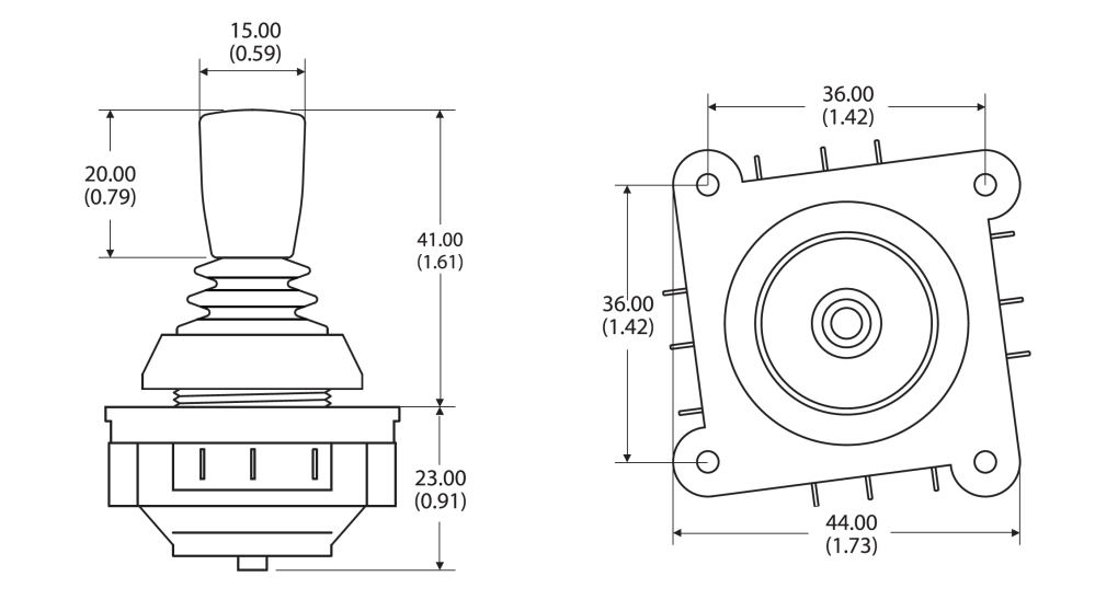 4-vägs navigationsswitch i form av en joystick. Switchen har internt fyra momentana enpoliga växlande switchar.
