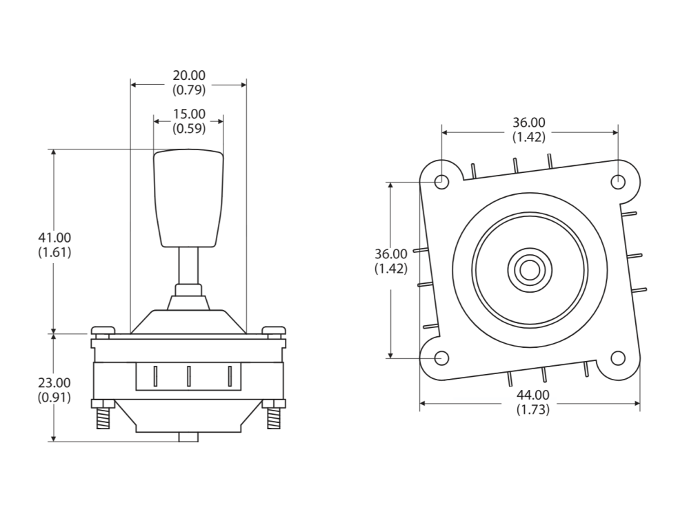 4-vägs navigationsswitch i form av en joystick. Switchen har internt fyra momentana enpoliga växlande switchar. Skivor för