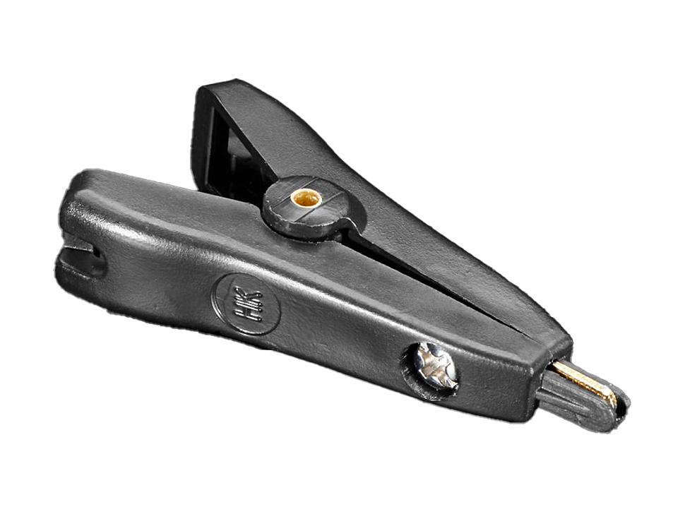 Kelvinklämma, en isolerad testklämma avsedd för fyrtrådsmätning där spänningsfall i ledningar behöver minimeras. Den används för att ta mätningar direkt vid kontaktpunkter på komponenter eller ledare, vilket gör den lämplig för precisionsmätningar som lågohmiga resistansmätningar och laboratorietest. Klämman har separata kontaktpunkter för ström och mätning och kan enkelt lödas till egna testledningar. Klämman levereras utan kabel. Konstruktionen med isolerade käftar gör att komponenter kan greppas säkert utan risk för kortslutning mellan kontaktytor.