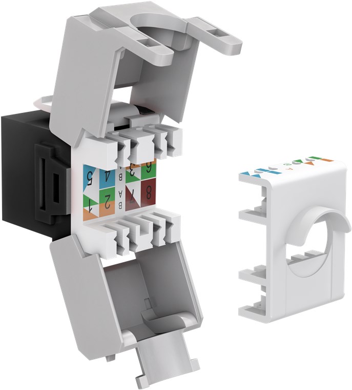 Keystone-modul för Cat 6A. RJ45-jack för verktygslös montering.