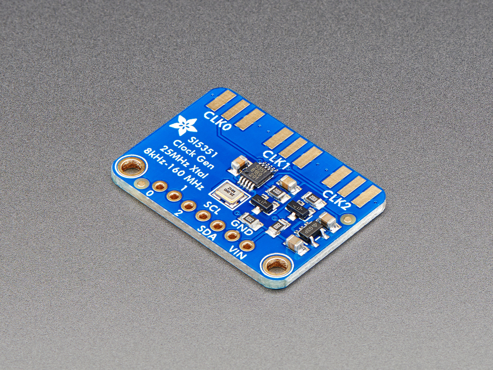 Si5351A är en klockgenerator som styrs via I2C och har en 25MHz referenskristall för att, tillsammans med interna PLL'er och frekvensdelare, skapa alla möjliga klockfrekvenser från 8kHz upp till 150+MHz. Kortet har tre separata utgångar, som var och en kan ställas till en egen frekvens. Utgångarna har en amplitud av 3Vpp och kan plockas ut antingen via en stiftlist eller via SMA-kontakter (säljes separat). På kortet finns även en 3.3V spänningsregulator och nivåomvandlare så att kortet säkert kan användas med både 3 och 5V-spänningsnivåer.