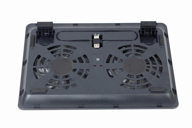 Kylplatta för bärbar dator upp till 15.6 tum storlek. Med dubbla tystgående fläktar som hjälper till att hålla datorn sval under användning. En praktisk lösning för arbete, gaming och längre användningspass där extra kylning önskas. Justerbar höjd ger bättre arbetsvinkel. Tillverkad av metall och plast för stabilitet och låg vikt. USB-anslutning (genomgång USB-A hane till USB-A hona) ger enkel strömförsörjning direkt från datorn.