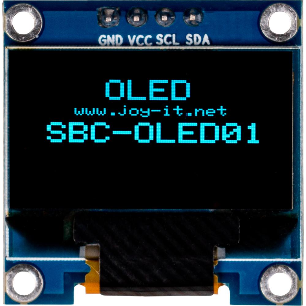 OLED-display med I2C-interface som gör den lätt att använda ihop med Arduino, Raspberry Pi eller andra mikrokontrollers och enkortsdatorer. OLED ger hög kontrast och låg strömförbrukning. Kontrollerkretsen är en SSD1306.