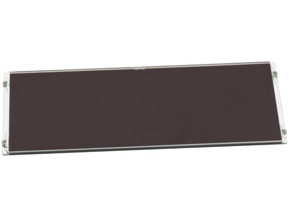 In this product, we have one small LCD piece, which will filter what you see through it. Normally, it's a tinted gray color (because the light around us is not polarized, it is not completely clear). There are two electrodes that you can put a voltage across to change the opacity.