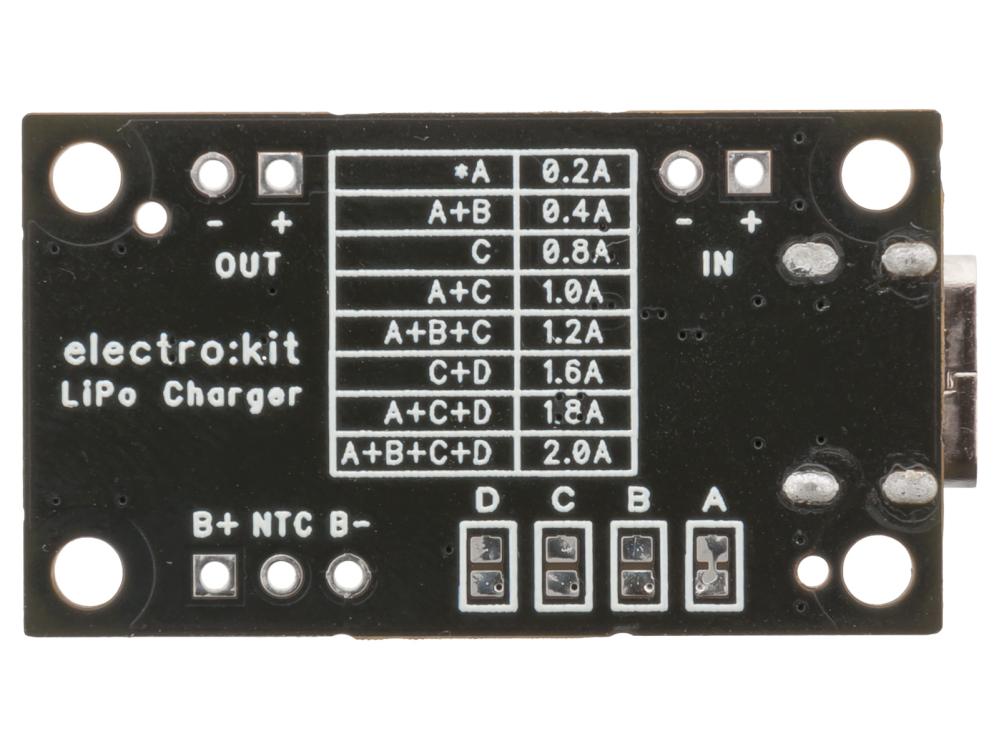 - Laddström: 0.2 A till 2.0 A (justerbar via lödbryggor)