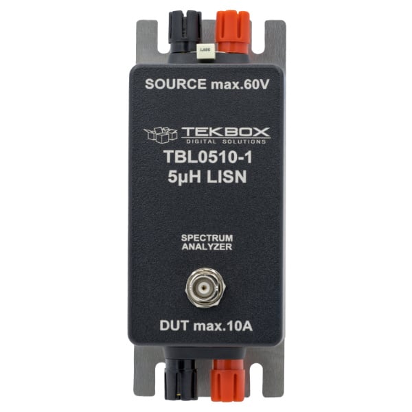 Instrument för mätning av störningar på ledningar för DC-strömförsörjning till enheter. LISN-modulen används tillsammans med en spektrumanalysator och kan testa frekvensområdet 150kHz till 110MHz.