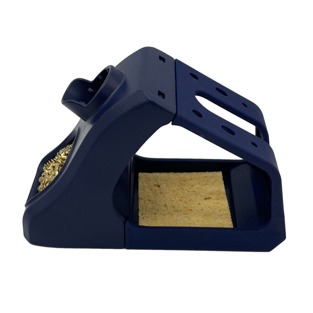 - Lödkolvshållare med lödspetsrengöring, både mässingsull och rengöringssvamp