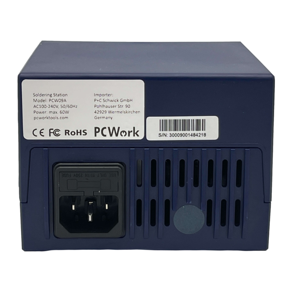 Kraftfull ESD-skyddad lödstation med digital temperaturinställning, lämplig för lödning med både blyat och blyfritt lödtenn. Keramiskt värmeelement ger snabb uppvärmning. Ställbar temperatur från 180 - 480 °C. Inbyggd mikrokontroller stabiliserar temperaturen. Möjlighet till lösenordsskydd för att förhindra oönskade ändringar av temperaturinställningarna.