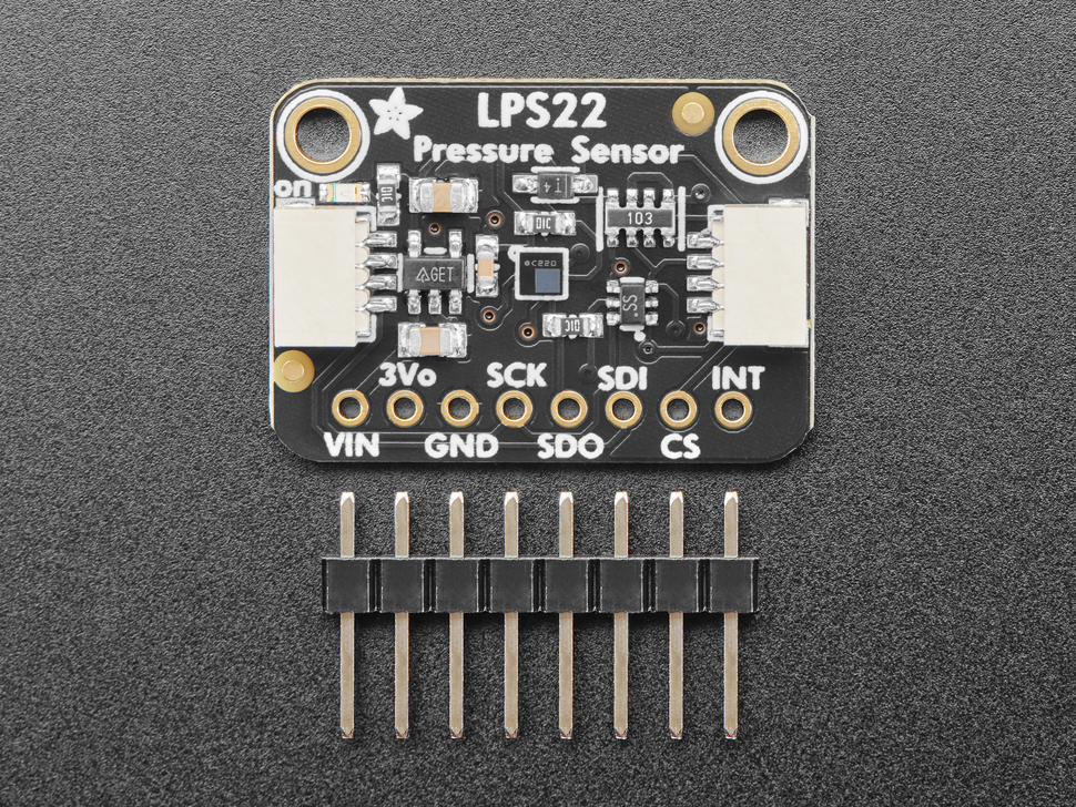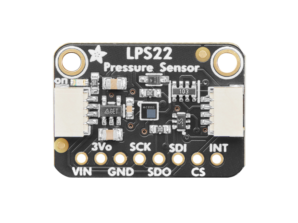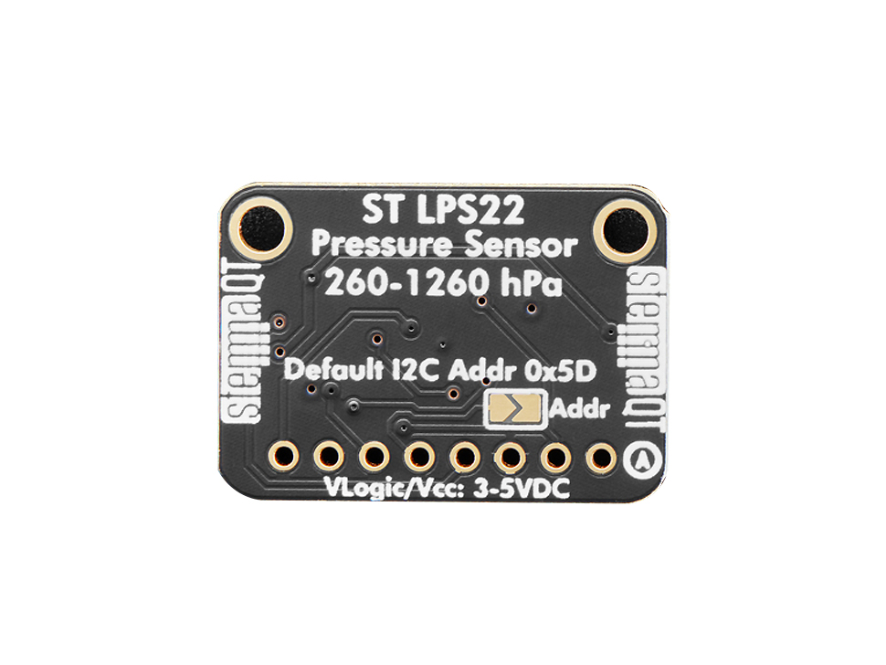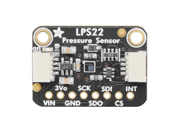 LPS22 är ett kompakt barometer- och temperatursensor-breakout baserat på sensorn LPS22HB. Används för att mäta lufttryck med hög upplösning och därmed kunna uppskatta väderförändringar eller höjd över havet. Sensorn kan leverera 24-bitars tryckdata och uppdateras upp till 75 gånger per sekund, vilket ger snabba och stabila mätningar i både portabla och fasta system.