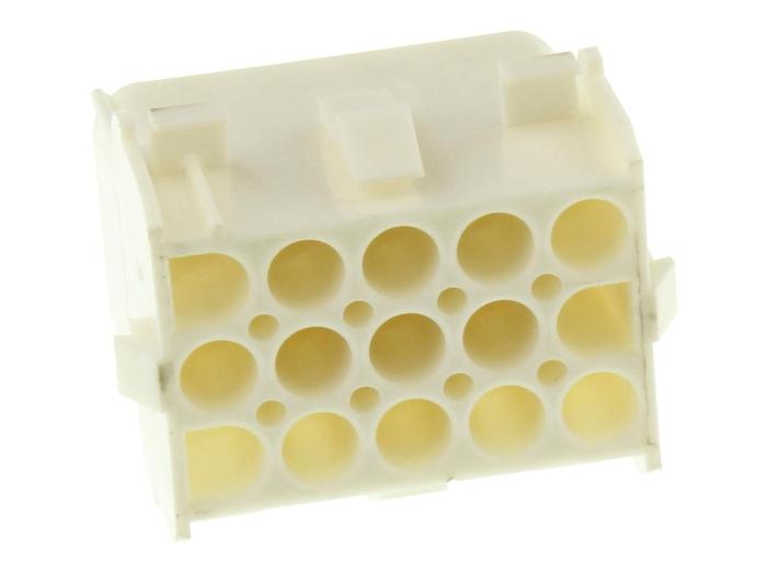 Kontakthus Mate-n-Lok universal. Kontakterna är polariserande och har snäppfäste.