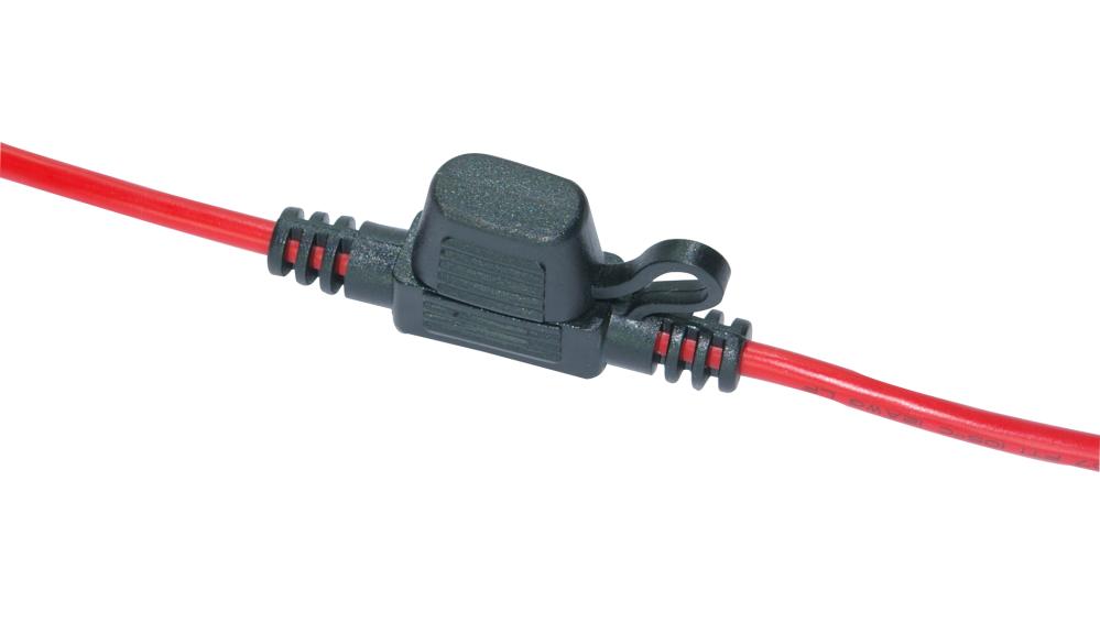 MINI / ATM flatsäkringshållare med kabel. Med skyddslock. Levereras utan säkring.