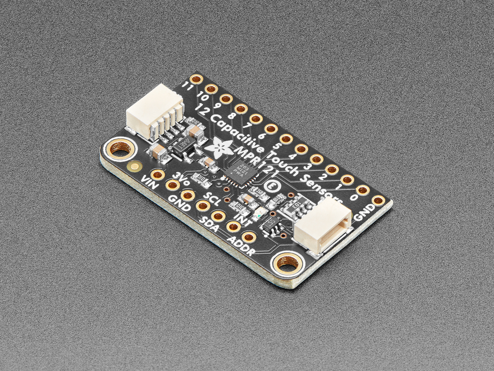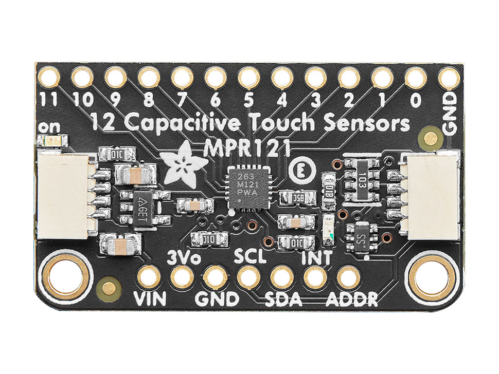Add lots of touch sensors to your next microcontroller project with this easy-to-use 12-channel capacitive touch sensor breakout board, starring the MPR121. This chip can handle up to 12 individual touch pads.