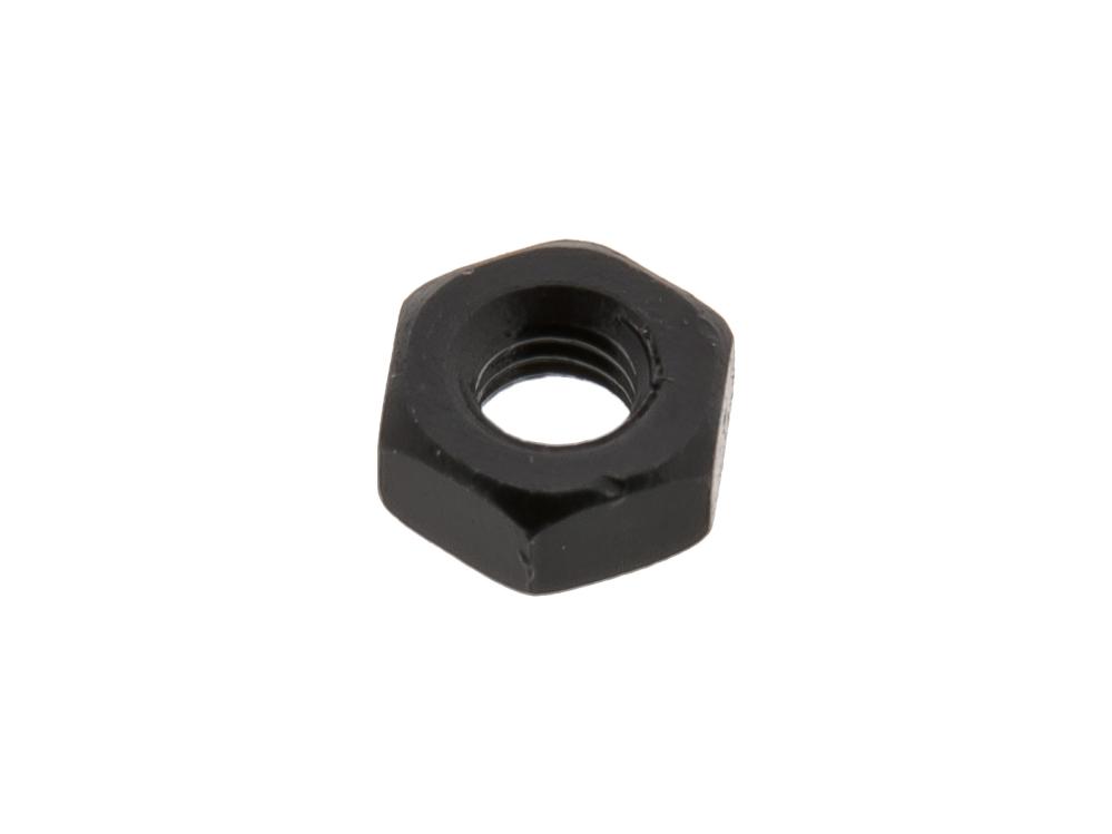 Mutter i stål med svart ytbehandling för rostskydd i torra miljöer.
