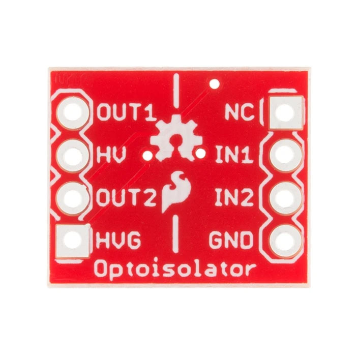 Description: This is a board designed for opto-isolation. This board is helpful for connecting digital systems (like a 5V microcontroller) to a high-voltage or noisy system. This board electrically isolates a controller from the high-power system by use of an opto-isolator IC. This IC has two LEDs and two photodiodes built-in. This allows the low-voltage side to control a high voltage side.