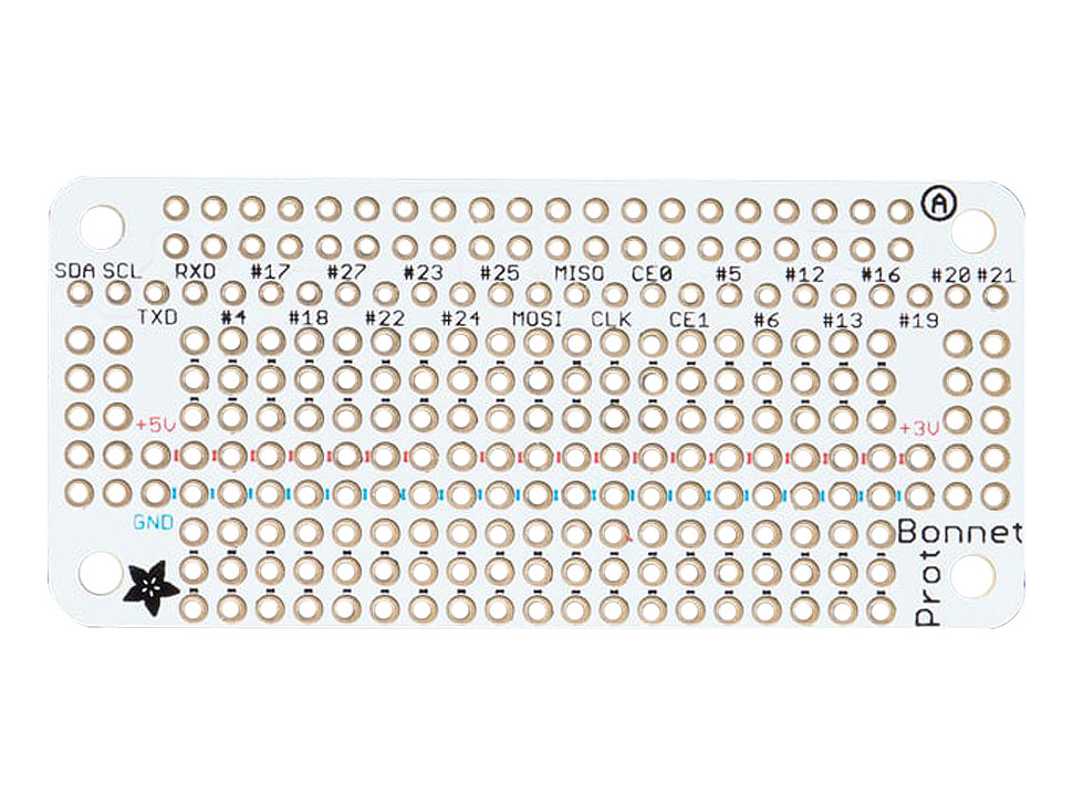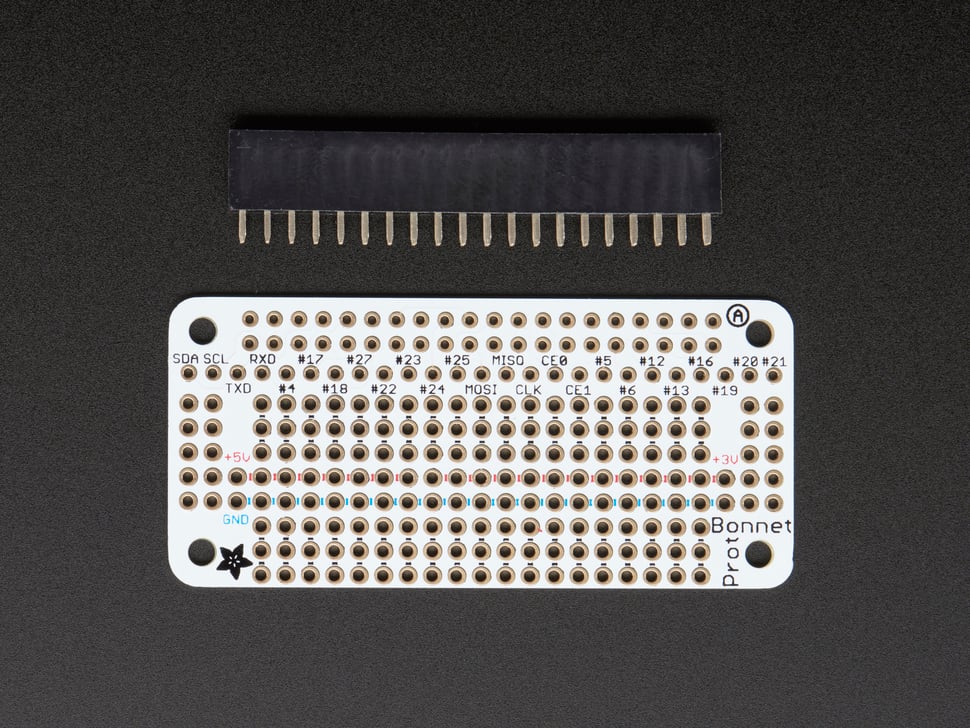 Gör dina egna expansionskort för Raspberry Pi Zero med Perma Proto Bonnet. Kortet levereras med en omonterad 2x20-pol hylslist. Kortet har inget EEPROM, så flera kort kan monteras på varandra och användas samtidigt.
