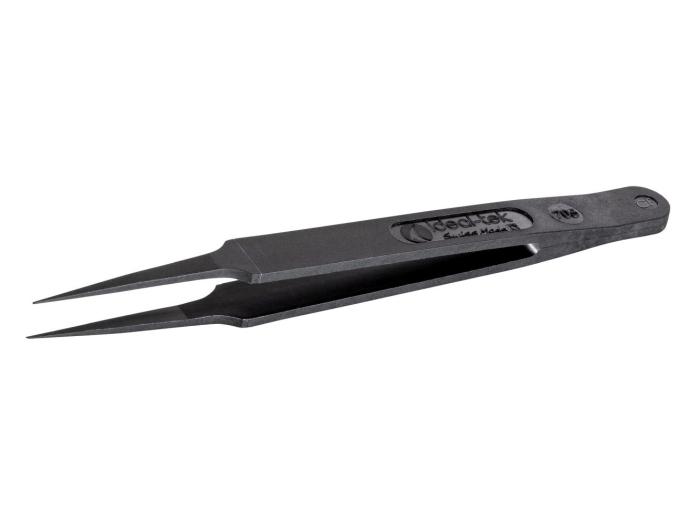 Precisionspincett av polyamid 66 förstärkt med 30% kolfiber. Särskilt lämpad för hantering av små och känsliga komponenter. Förutom elektroniska komponenter även mikromekaniska element, glas, känsliga keramer m.m. Ideal-tek är ett schweiziskt företag som utvecklar och tillverkar precisionsverktyg för elektronik, mikromekanik och finmekaniskt arbete.