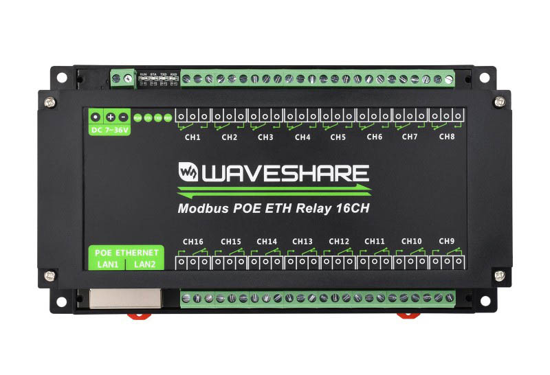 Relämodul 16-kan Modbus Ethernet PoE DIN-skena