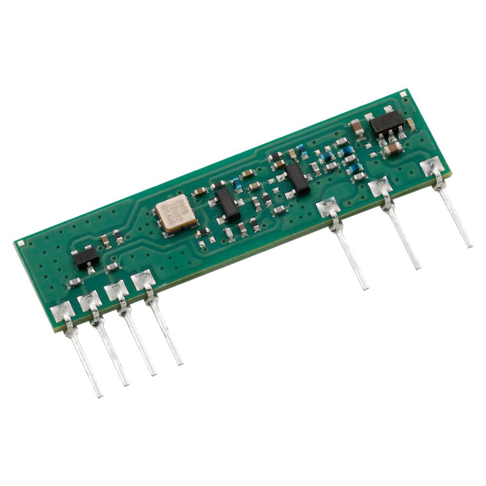 Den stabila bärfrekvensen genereras av SAW-resonator och modulen kan styras via digital moduleringsingång med fyrkantsvåg. Den kan användas som ersättning för äldre modeller i samma serie och är konstruerad för enkel integration i befintliga konstruktioner.