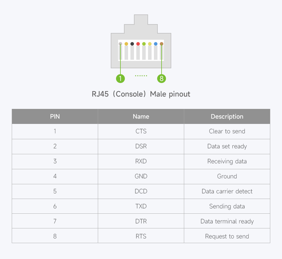 - Interface device: 8P8C RJ45 console port