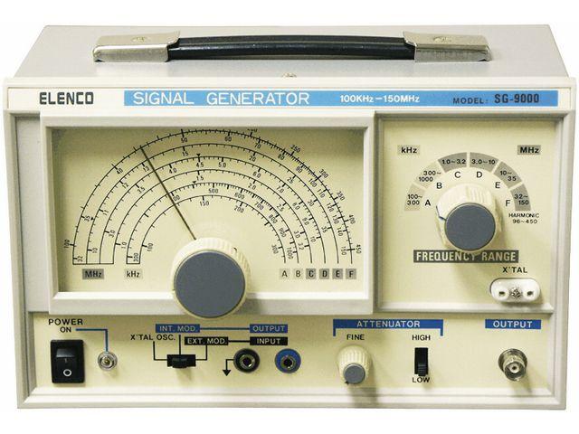 En signalgenerator som täcker frekvensområdet 100 kHz - 450 MHz i sex områden. Variabel RF-utspänning och 20 dB dämpsats som kan kopplas in vid behov. Intern 1kHz AM-modulator. 1 kHz audiosigal även tillgänglig via utgång. Extern kristall låser oscillatorn till frekvens mellan 1-15 MHz. 455 kHz, 4.5 MHz och 10.7 MHz särskilt utmärkt på skalan.