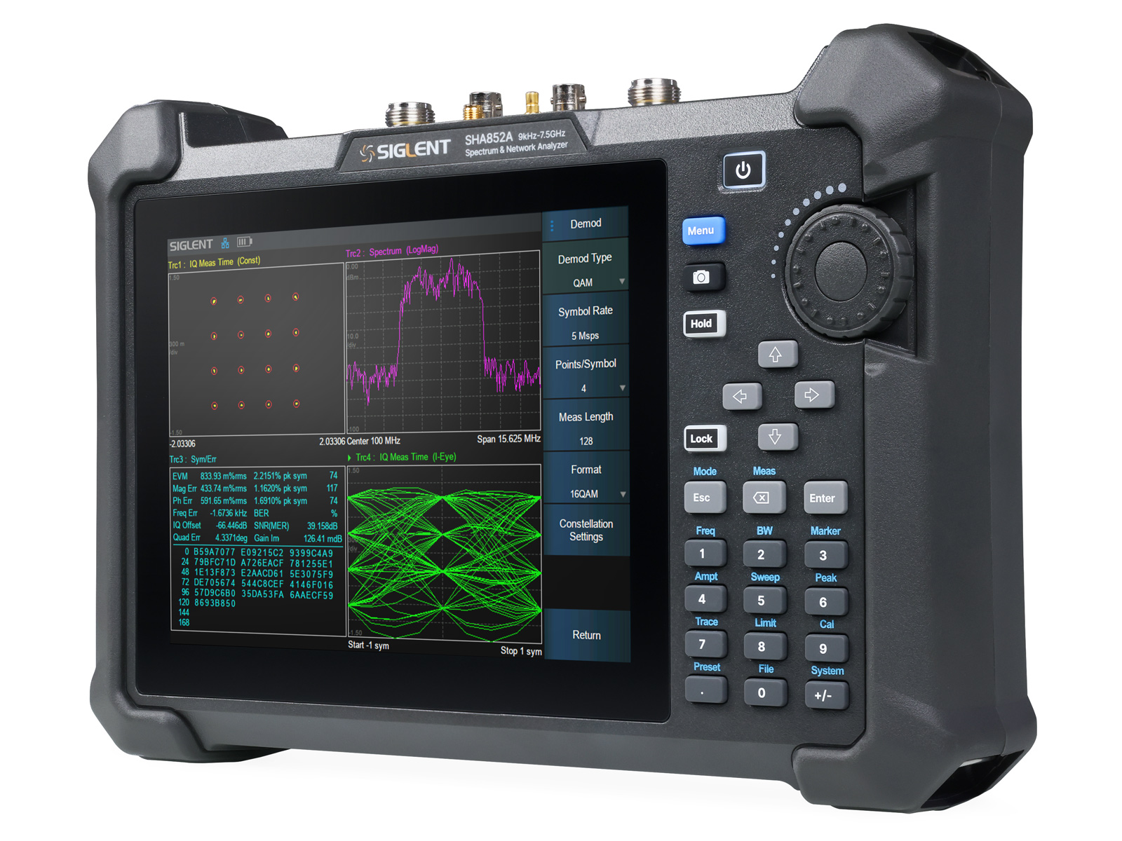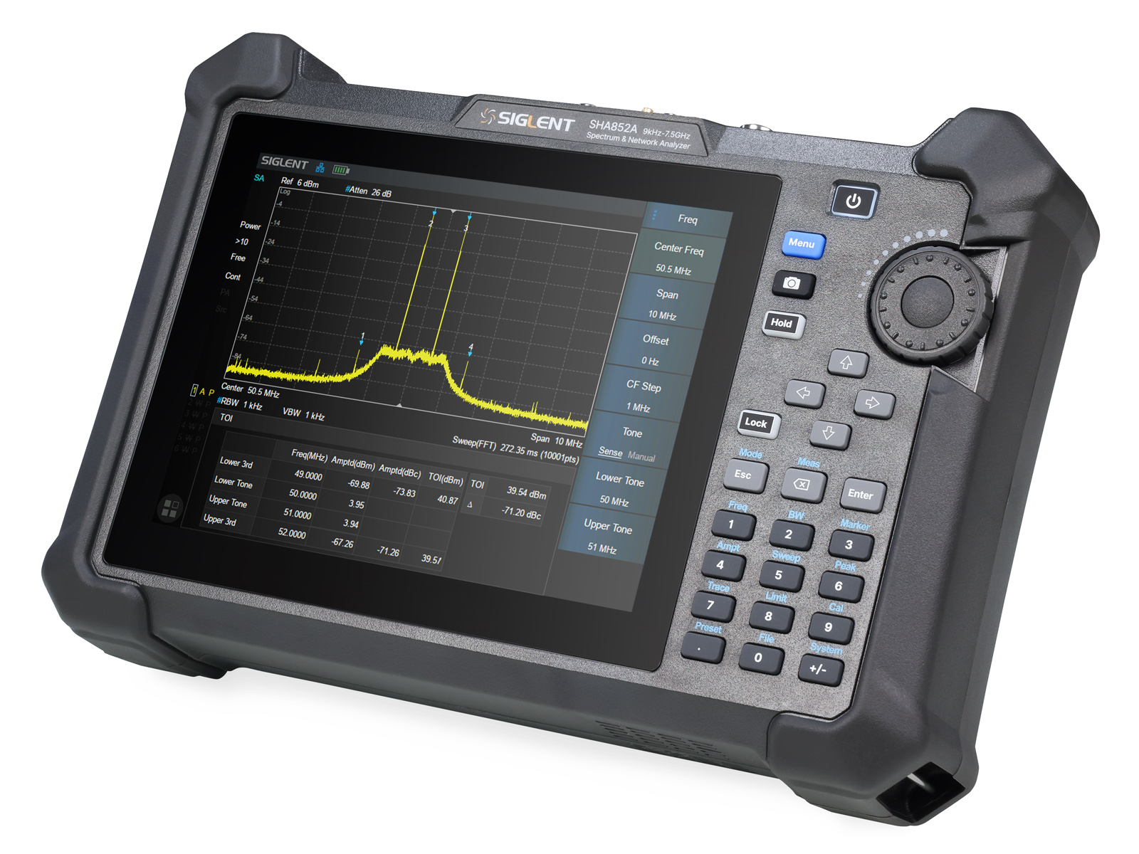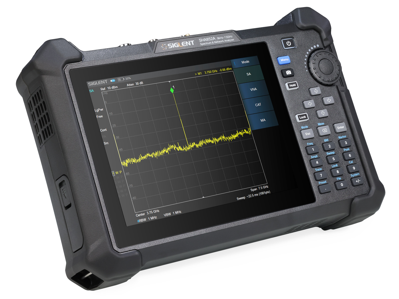 SIGLENT SHA850A, en bärbar handhållen spektrumanalysator och kabel- och antennanalysator, är ett kraftfullt och flexibelt verktyg för RF-applikationer på fältet och utomhus.