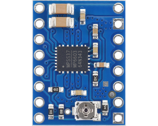 MP6603 Stegmotordrivare. Modul för styrning av bipolära stegmotorer med enkel step- och riktstyrning. Kortet bygger på MP6603-kretsen från Monolithic Power Systems. Erbjuder stabil strömreglering samt mikrosteg upp till 1/8-steg för mjuk och exakt rörelse. Den breda drivspänningsområdet gör modulen lämplig för allt från laboratorieuppställningar till industriella rörelsesystem.