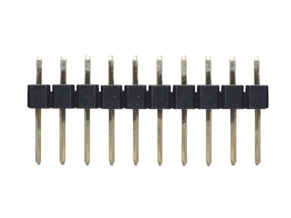 1x10p stiftlist med 2.54 mm benavstånd för kretskortsmontage. Stift av mässing.