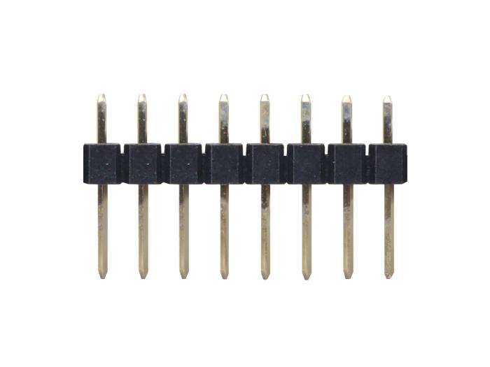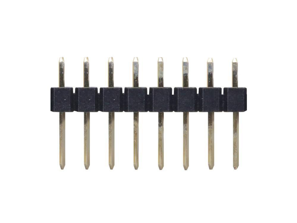 1x8p stiftlist med 2.54 mm benavstånd för kretskortsmontage. Stift av mässing.