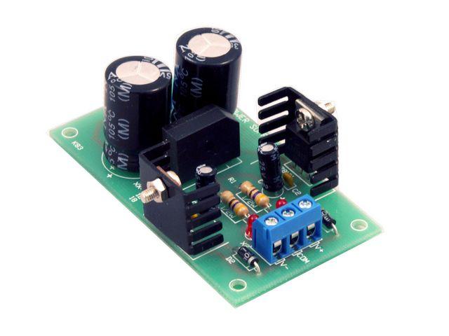 En dubbel strömförsörjning för applikationer då det behövs både positiv och negativ spänning. Förses med 78xx och 79xx för rätt spänning. Två kylflänsar för TO-220 ingår. Kräver en transformator med dubbla uttag, se relaterade produkter för lämpliga modeller.