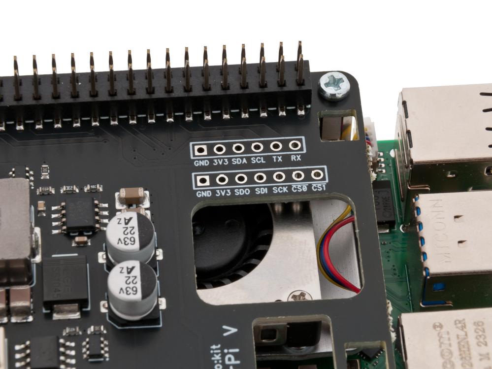 Power Supply HAT för Raspberry Pi 5 (även Pi 3 och 4). Frigör dig från behovet av att strömförsörja via USB-C (5V 5A) plug-in nätadapter. Gör att du kan strömförsörja från valfritt externt nätaggregat. Utmärkt när Raspberry sitter inbyggt i applikationer. Även lämplig då man vill strömförsörja flera Raspberry Pi från ett och samma nätaggregat, exempelvis till monitorer som används i reklamskylt-sammanhang (Digital signage). Den flexibla matspänningen (6 - 36 V) gör att man kan välja mellan en mängd lättillgängliga DC-nätaggregat på marknaden. Skyddad mot felaktig inkoppling (polaritet), överspänning, överhettning och kortslutning. Blockerar inte anslutningar för MIPI (kamera/display) eller PCI-Express. Kan samtidigt användas med kylfläkt eller kylfläns (max 10 mm), t.ex. Raspberry Pi Active Cooler. Inga GPIO-pinnar används och alla vanliga expansionskort (HATs) kan monteras ovanpå Power Supply HAT.