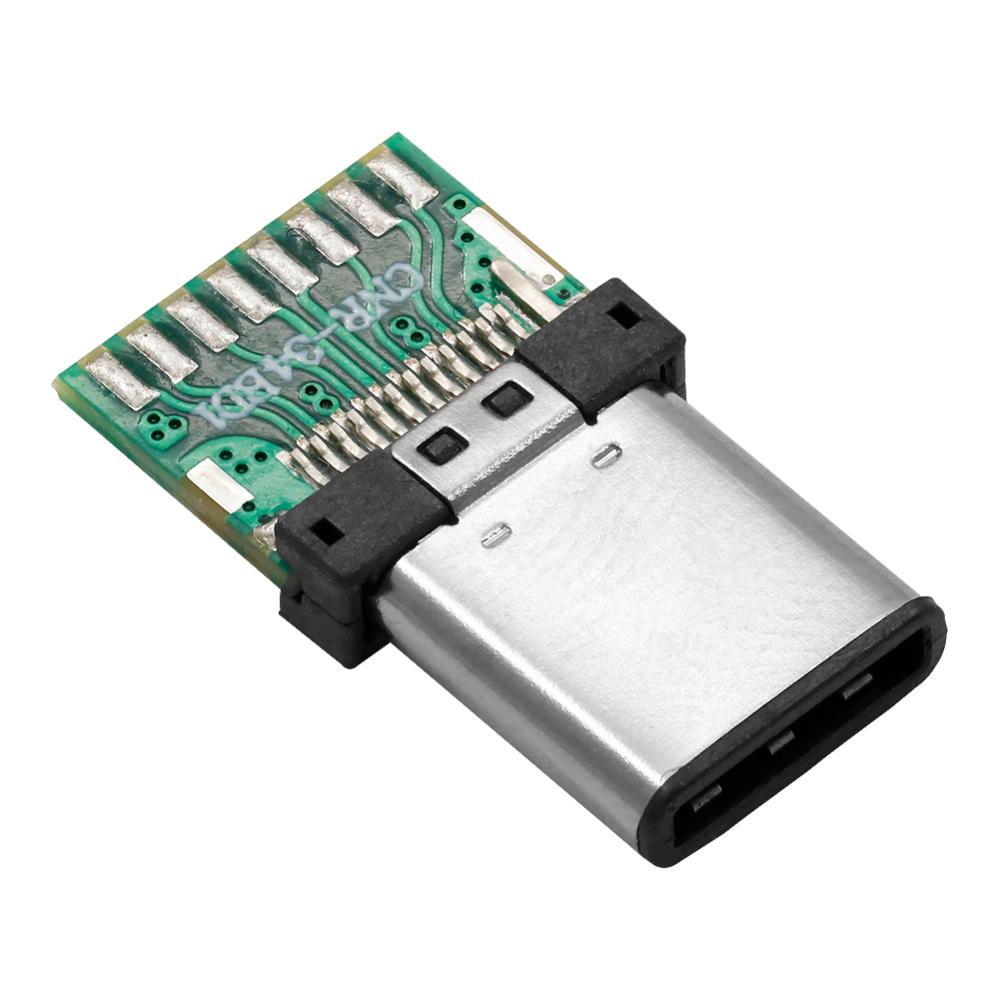 USB-C kontakt för direkt lödning till sladdar om man vill göra en egen USB-kabel. Kontakten är fullkopplad och har anslutningar för spänning, data, CC samt Tx/RX och SBU.