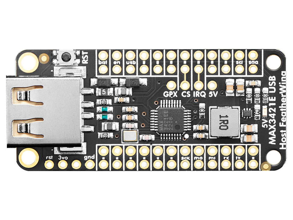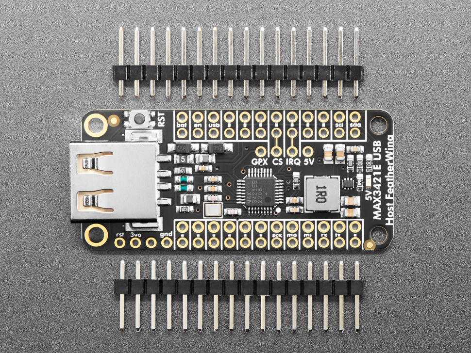 Comes as an assembled Wing with some header. Solder on the header and plug into a Feather Mainboard to expand it's capabilities! Don't forget, you need driver support for the MAX3421E (see above for chips that are known working) and unless you're using a generic mouse, keyboard, CDC serial or USB mass storage device you will also need a USB driver that knows how to talk to the device - and writing a driver is non-trivial.
