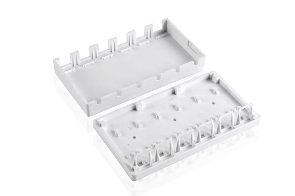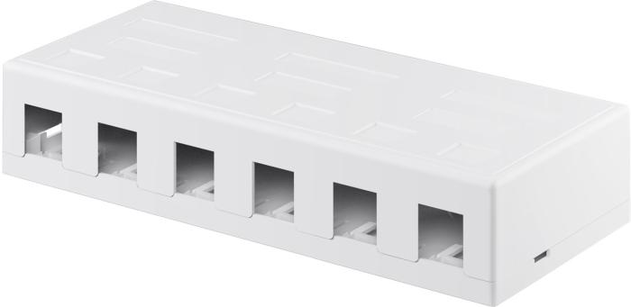 Väggdosa för 6x Keystone-moduler. Lämplig för installation i hem, kontor och lager. Kan även användas som en mini-patch-panel. Enkel snäppmontering och avsedd för montering på vägg. Med fält för märkning.