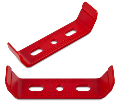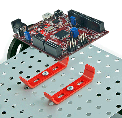 Fästelement som passar till Arduino UNO, chipKit32 och andra kort med samma formfaktor. Klämman skruvas fast i underlaget, kortet snäpper man snabbt och enkelt på plats. Kan monteras direkt på Digilents robotplattform. Säljes parvis. Skruvar säljes separat.